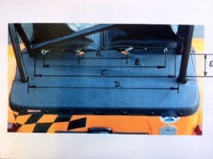 A. Centre line between inner seat belt bolts ( Please also check that seat belts are equidistant to the centre line )